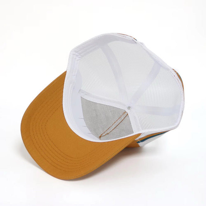 Designed with bold colours , a mesh back for airflow in the warmer weather and adjustable snap back to accommodate for size.