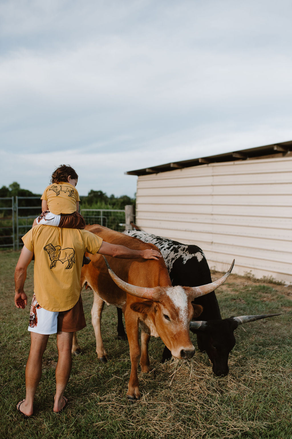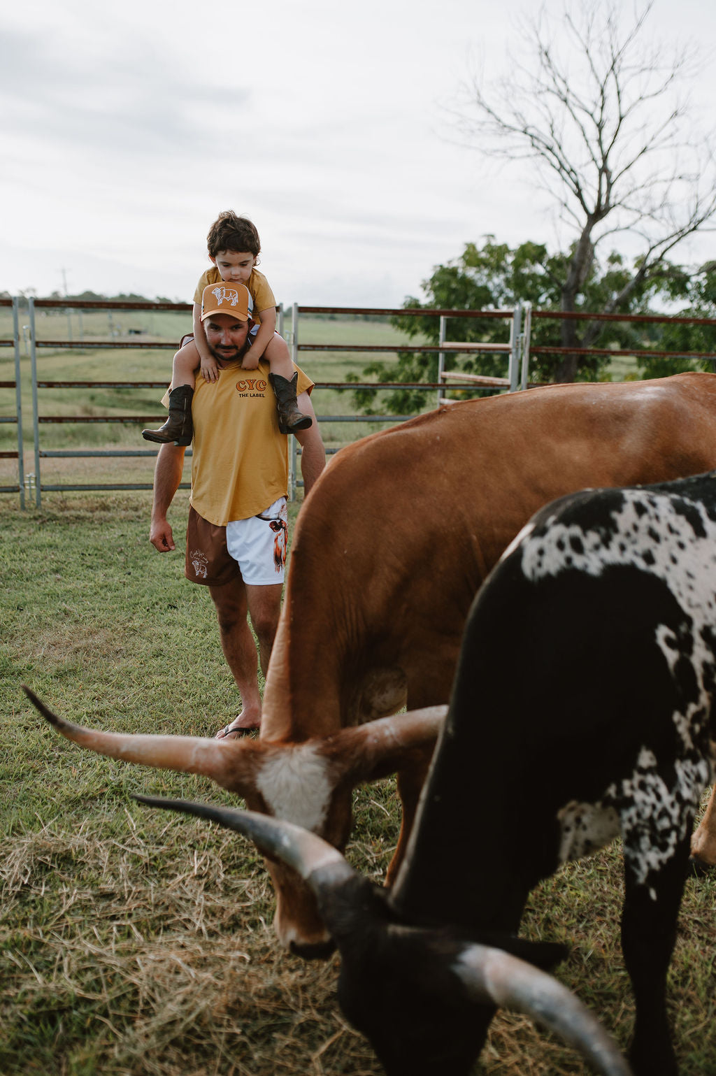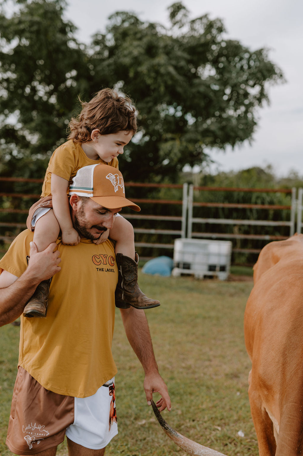 Introducing the CYC Classic Tee, your new go-to for everyday wear! Made with breathable soft cotton and featuring an embroidered logo on the front chest and brahman cow on the back. Available in sizes for kids to adults, perfect for coordinating outfits. This tee features a round neckline and a curved hem, and pairs beautifully with our other items.